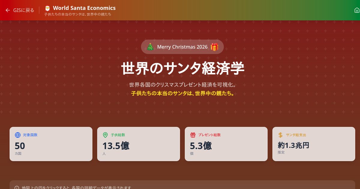 世界各国のクリスマスプレゼント経済を可視化。子供たちの本当のサンタは、世界中の親たち。